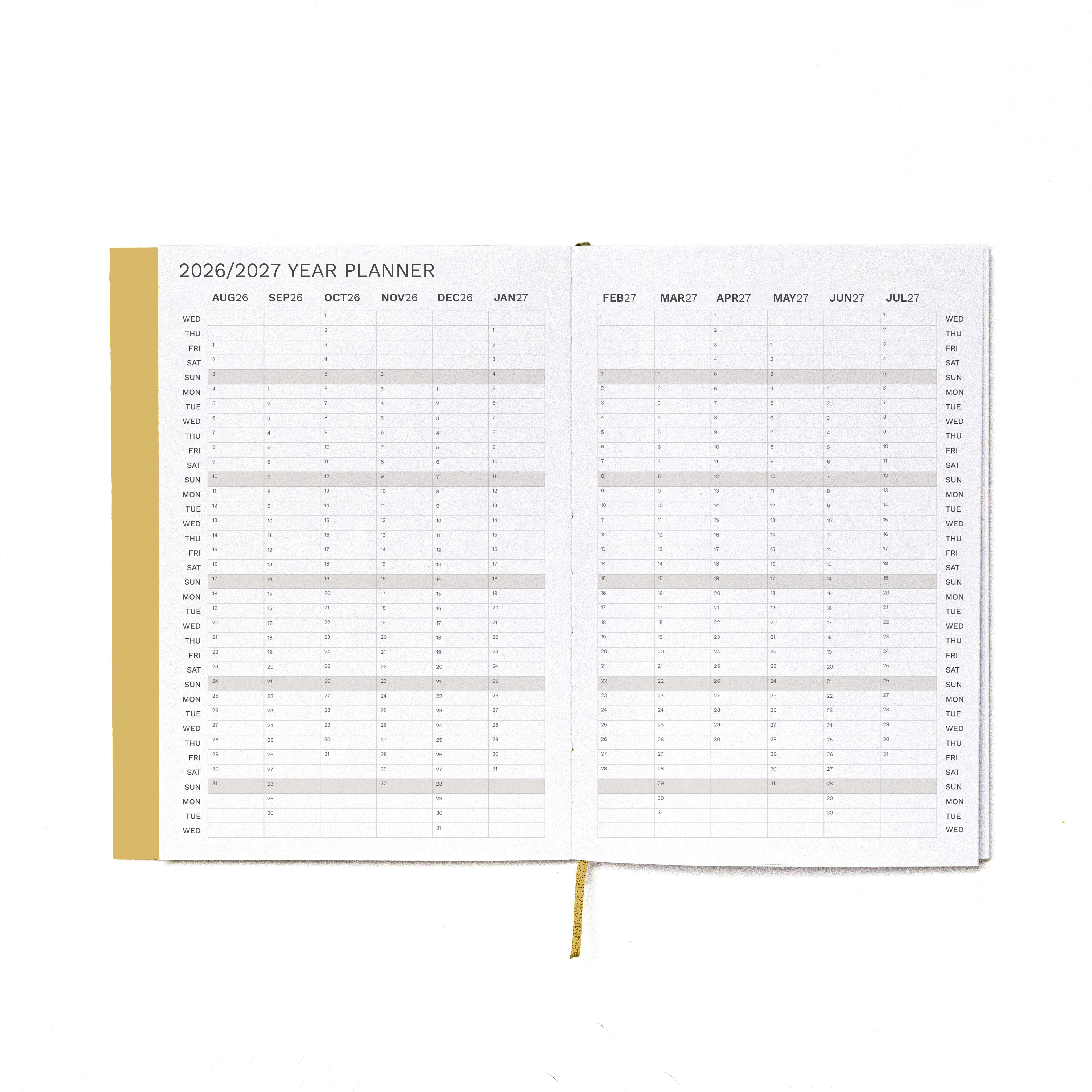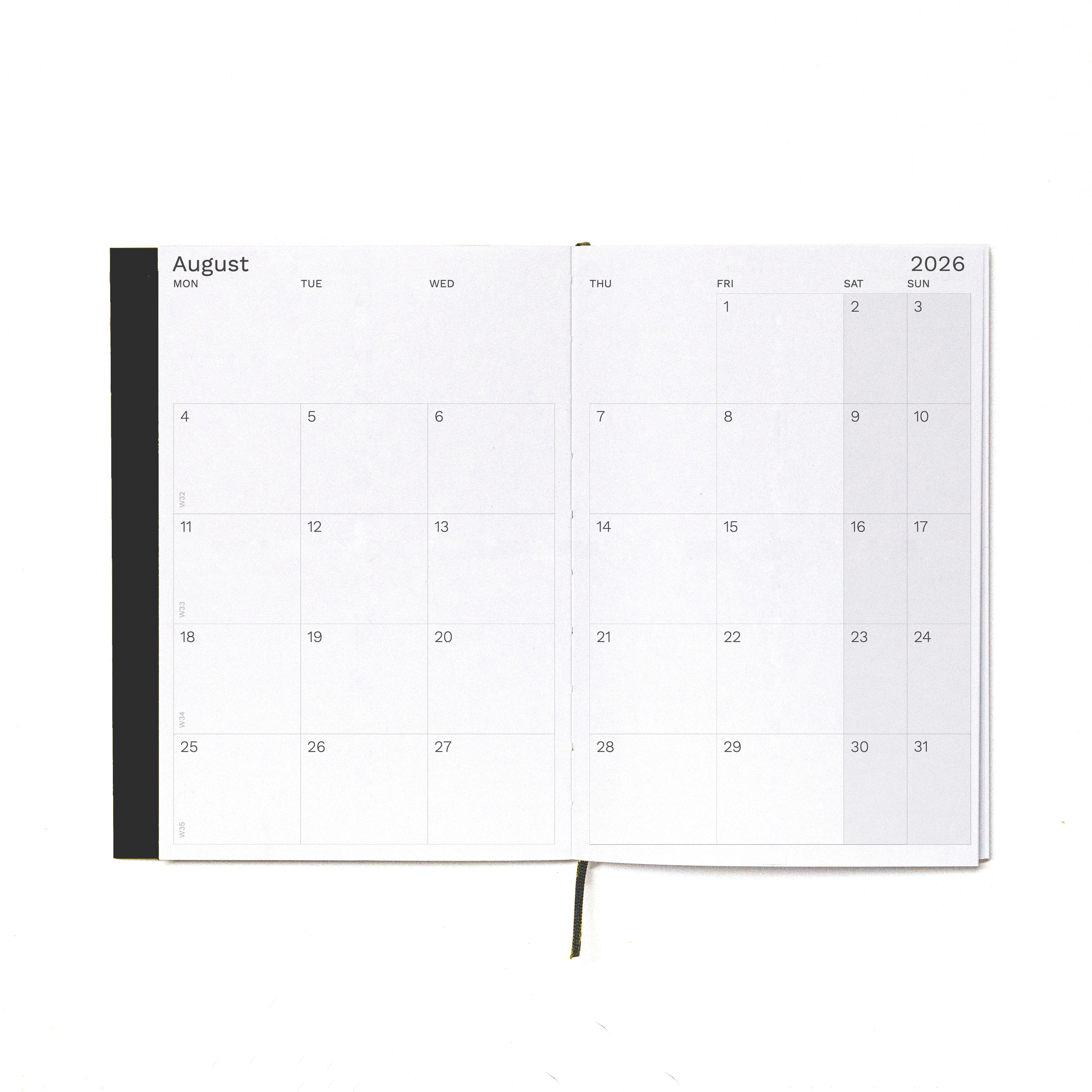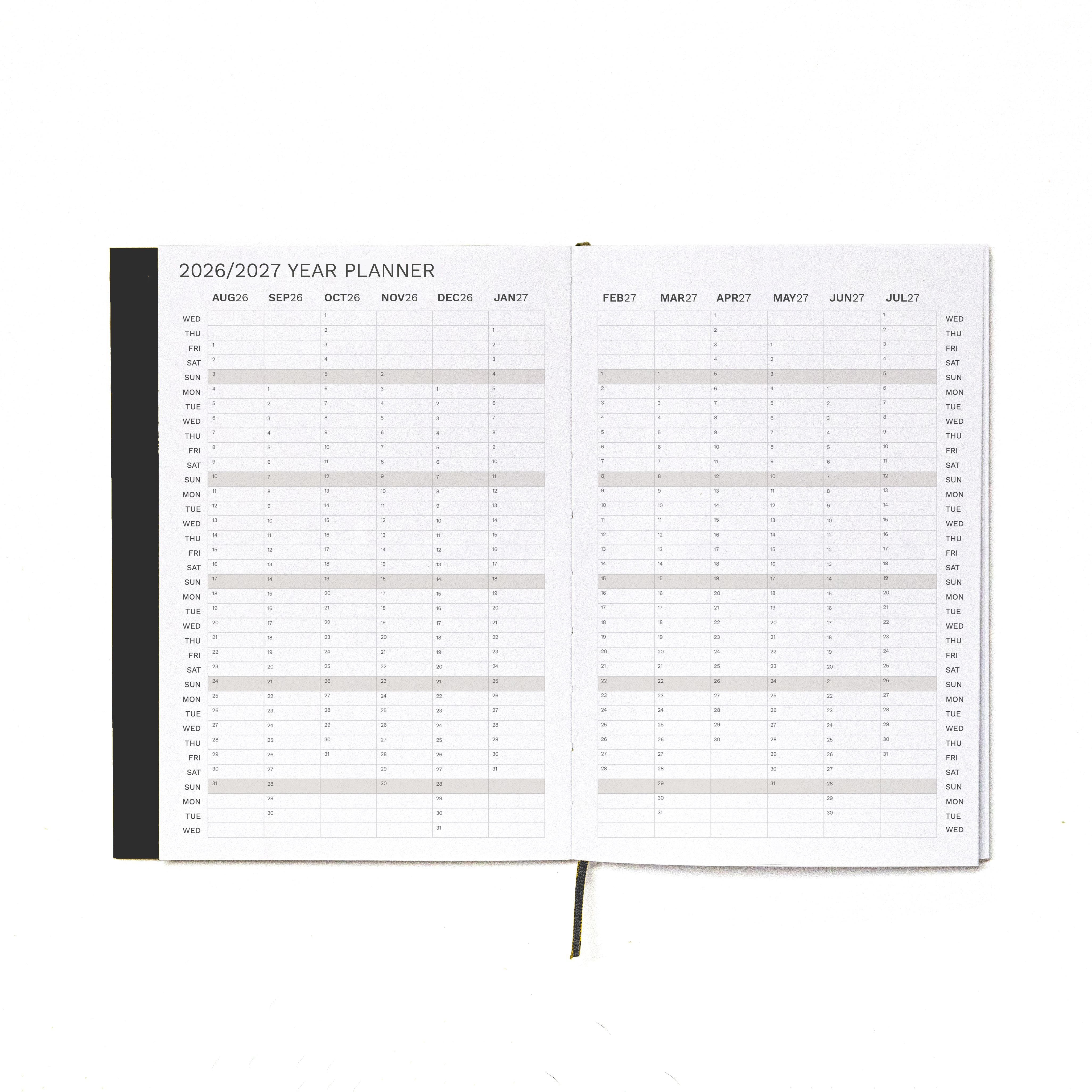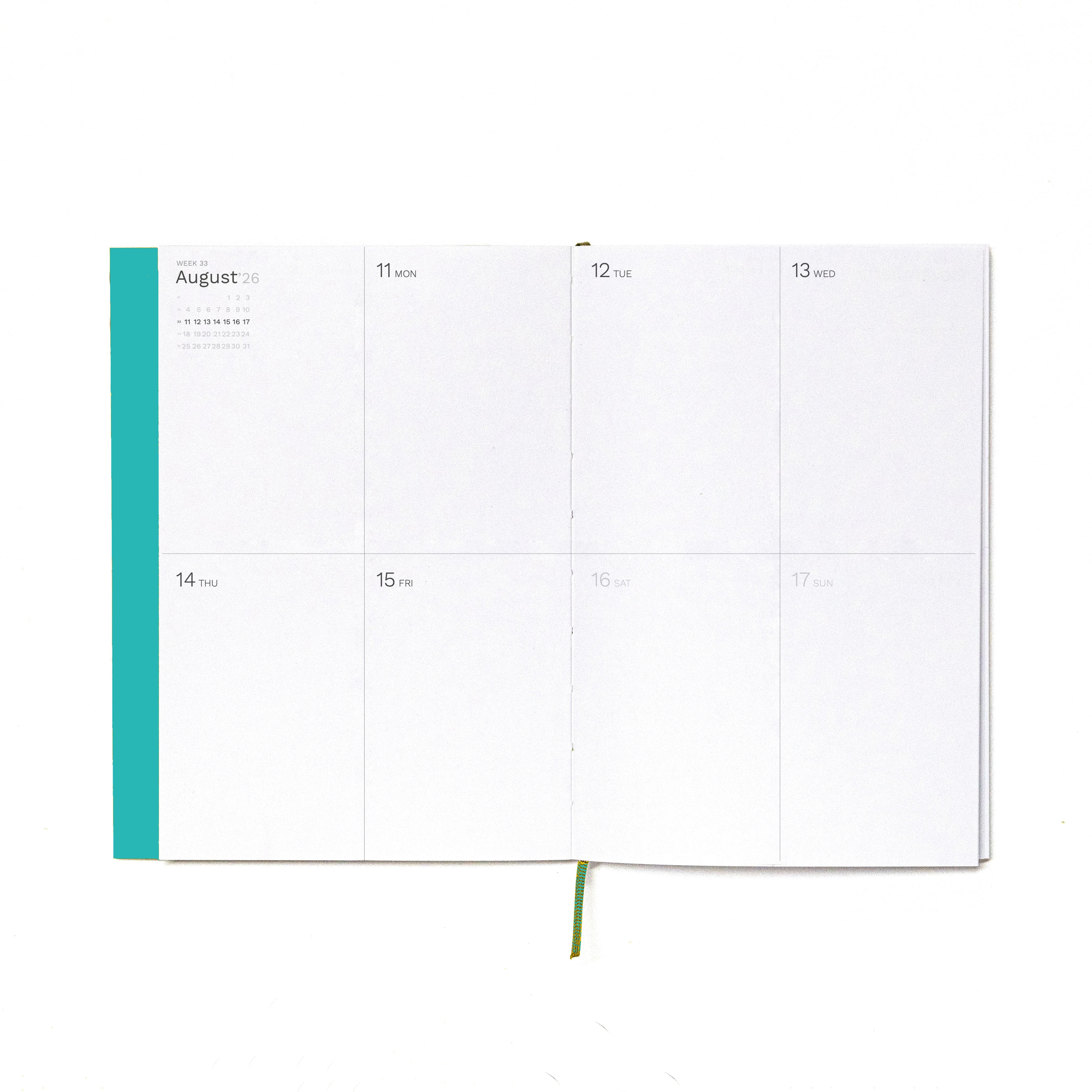 2026-2027 Weekly Planner · Planificador semanal · Tamaño similar A5 · Exposed Spine